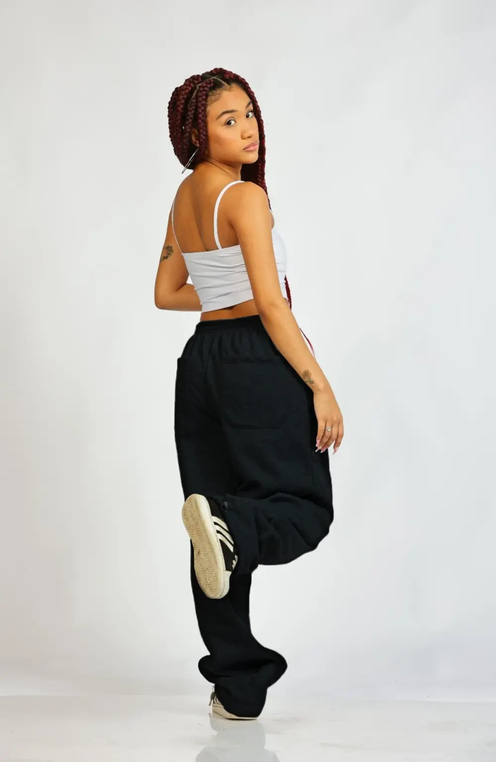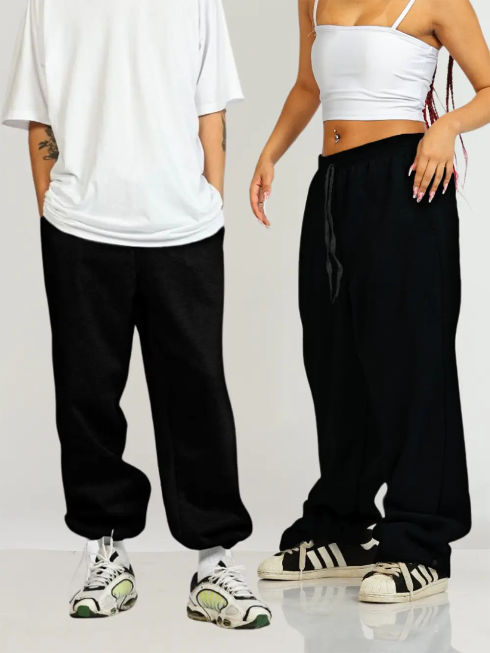 A nossa calça Baggy é feita em moletom e possui 4 bolsos funcionais, sendo dois na frente e dois no bumbum. Além de possuir elástico com cordão de ajuste na cintura, a peça conta com ajuste na barra, podendo ser utilizada como jogger, ou larga mesmo.