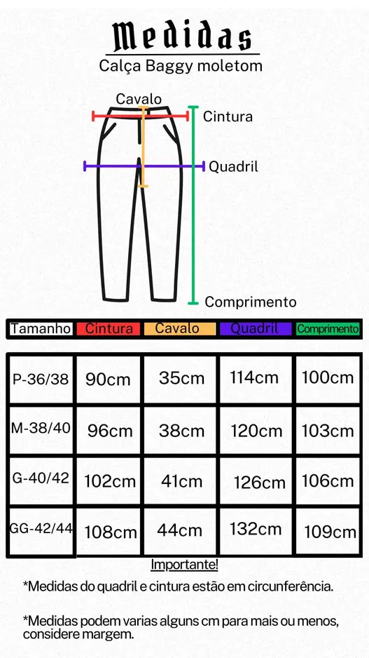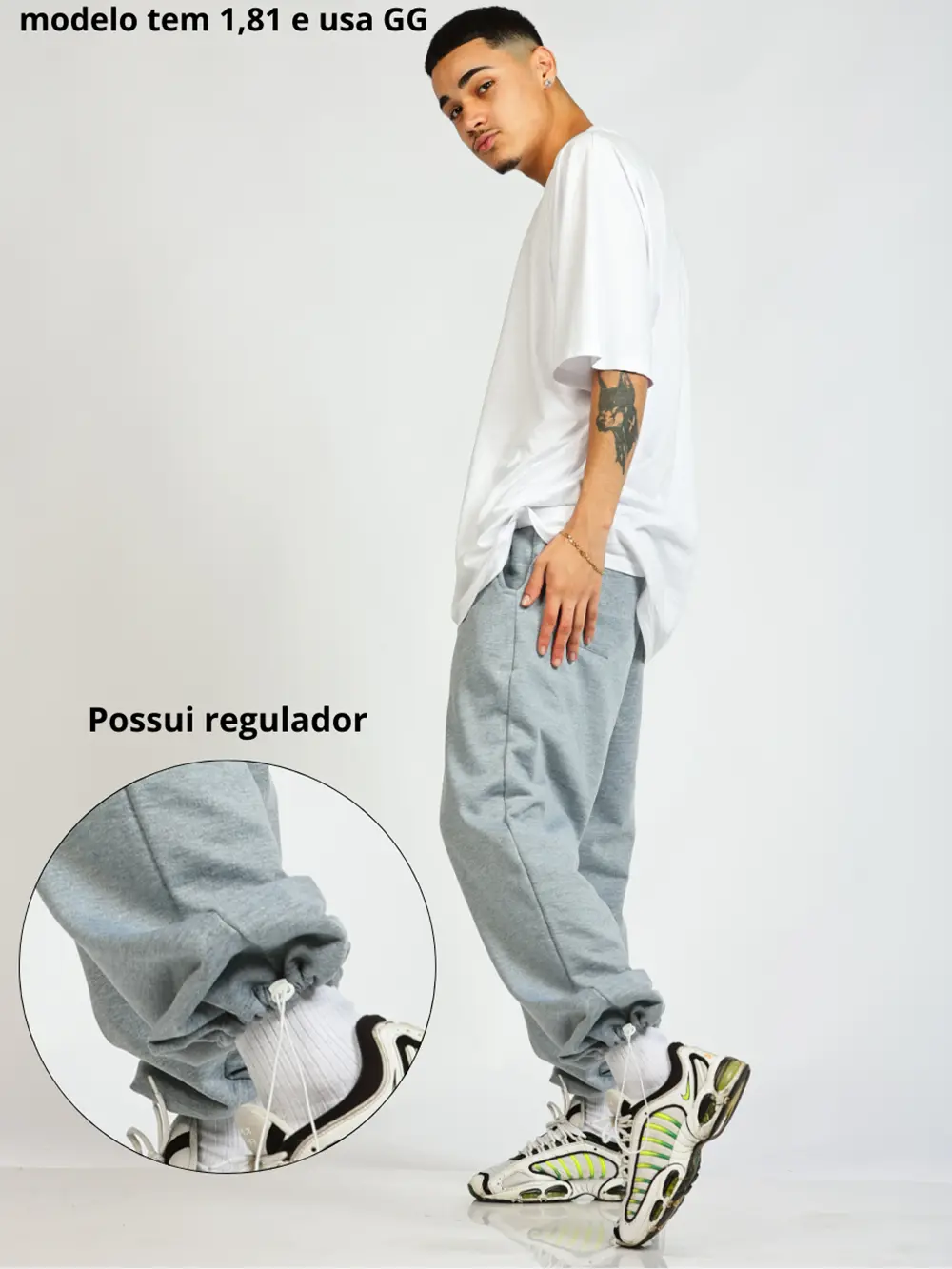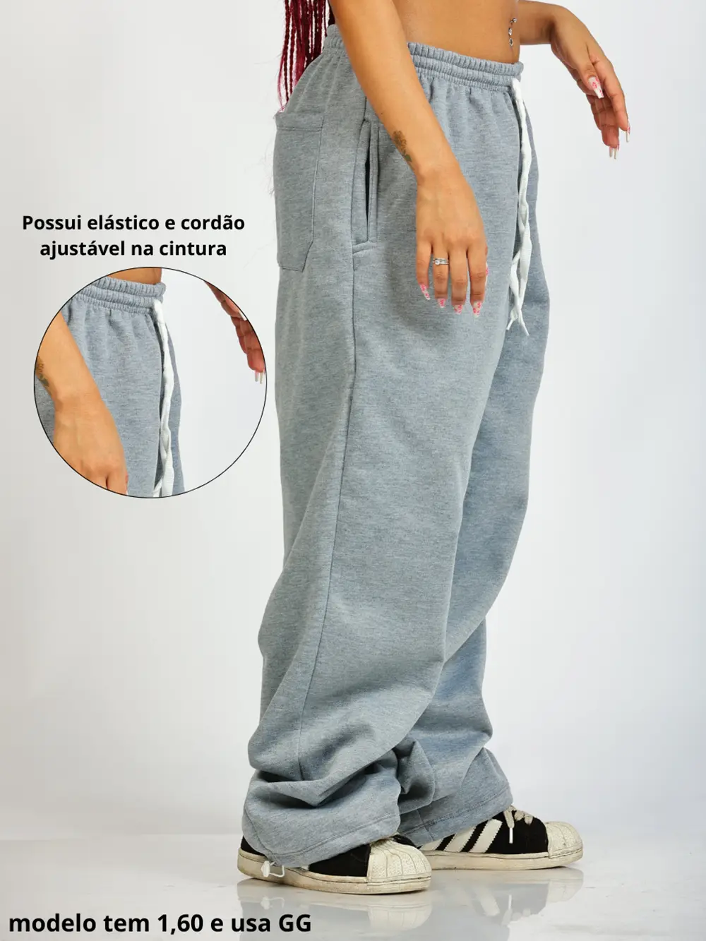 A nossa calça Baggy é feita em moletom e possui 4 bolsos funcionais, sendo dois na frente e dois no bumbum. Além de possuir elástico com cordão de ajuste na cintura, a peça conta com ajuste na barra, podendo ser utilizada como jogger, ou larga mesmo.