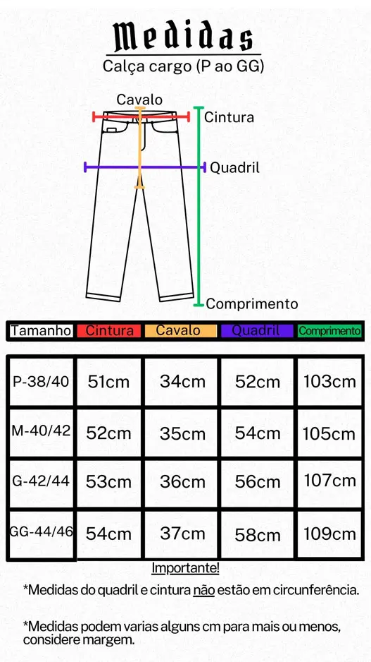 Possui 6 bolsos 100% funcionais, sendo dois bolsos “faca” forrados, dois bolsos laterais com lapela, e dois bolsos traseiros.