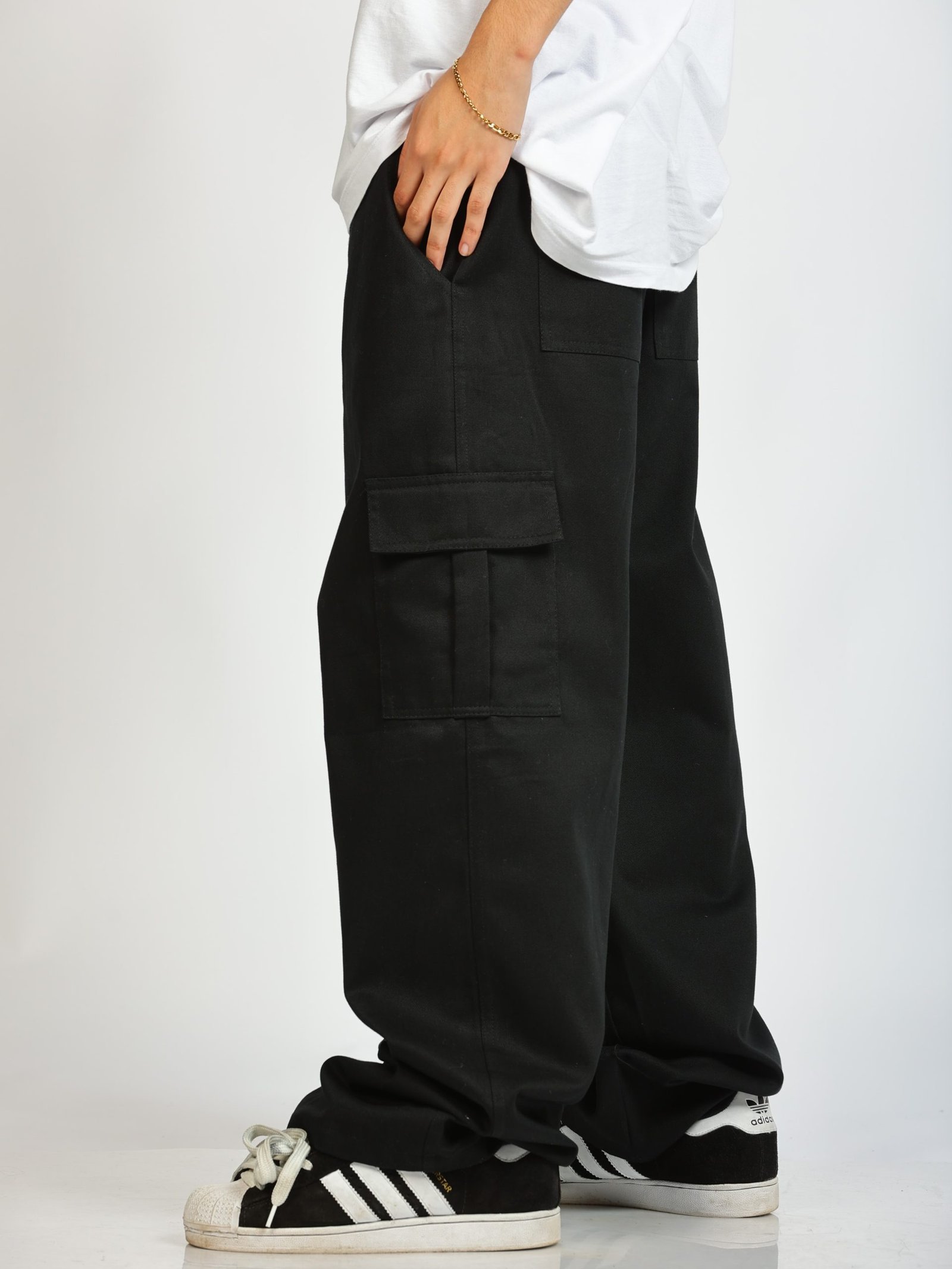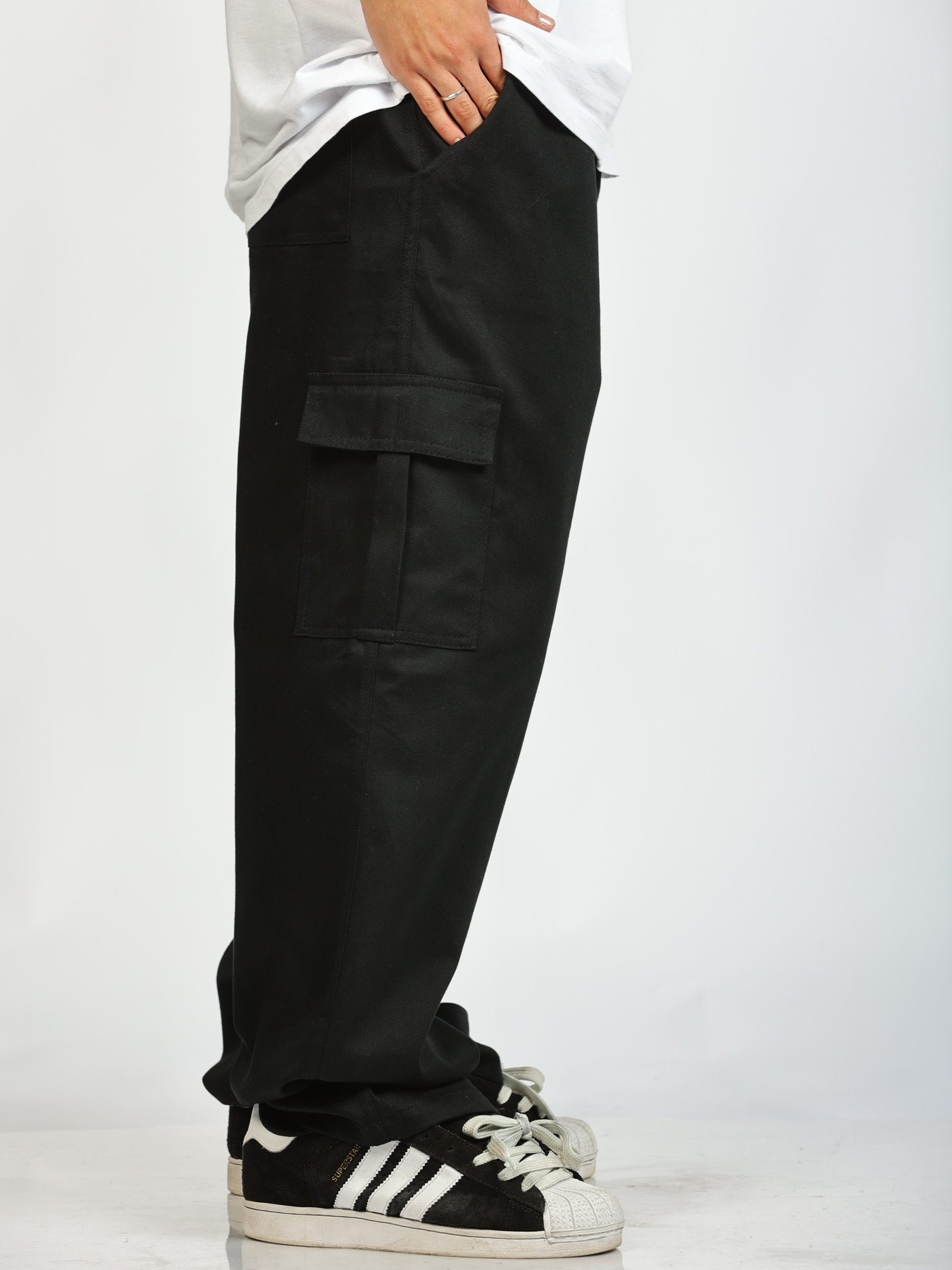 A calça cargo preta Co Buka é confeccionada em sarja 100% algodão, de gramatura pesada, o que garante conforto e durabilidade. Além disso, a sua modelagem foi feita com base nas calças “balão” dos anos 2000, que são essenciais para quem curte o streetwear clássico!