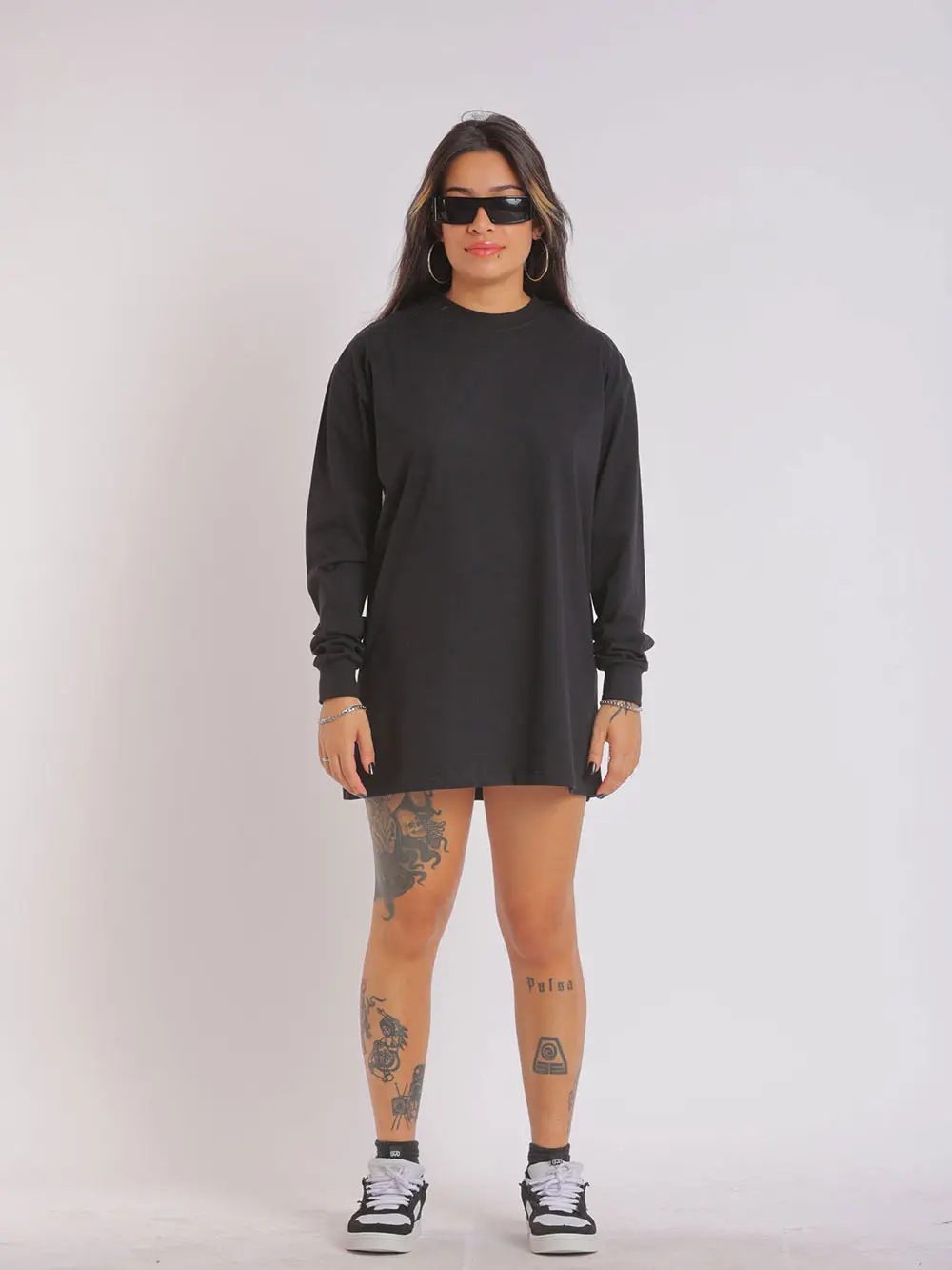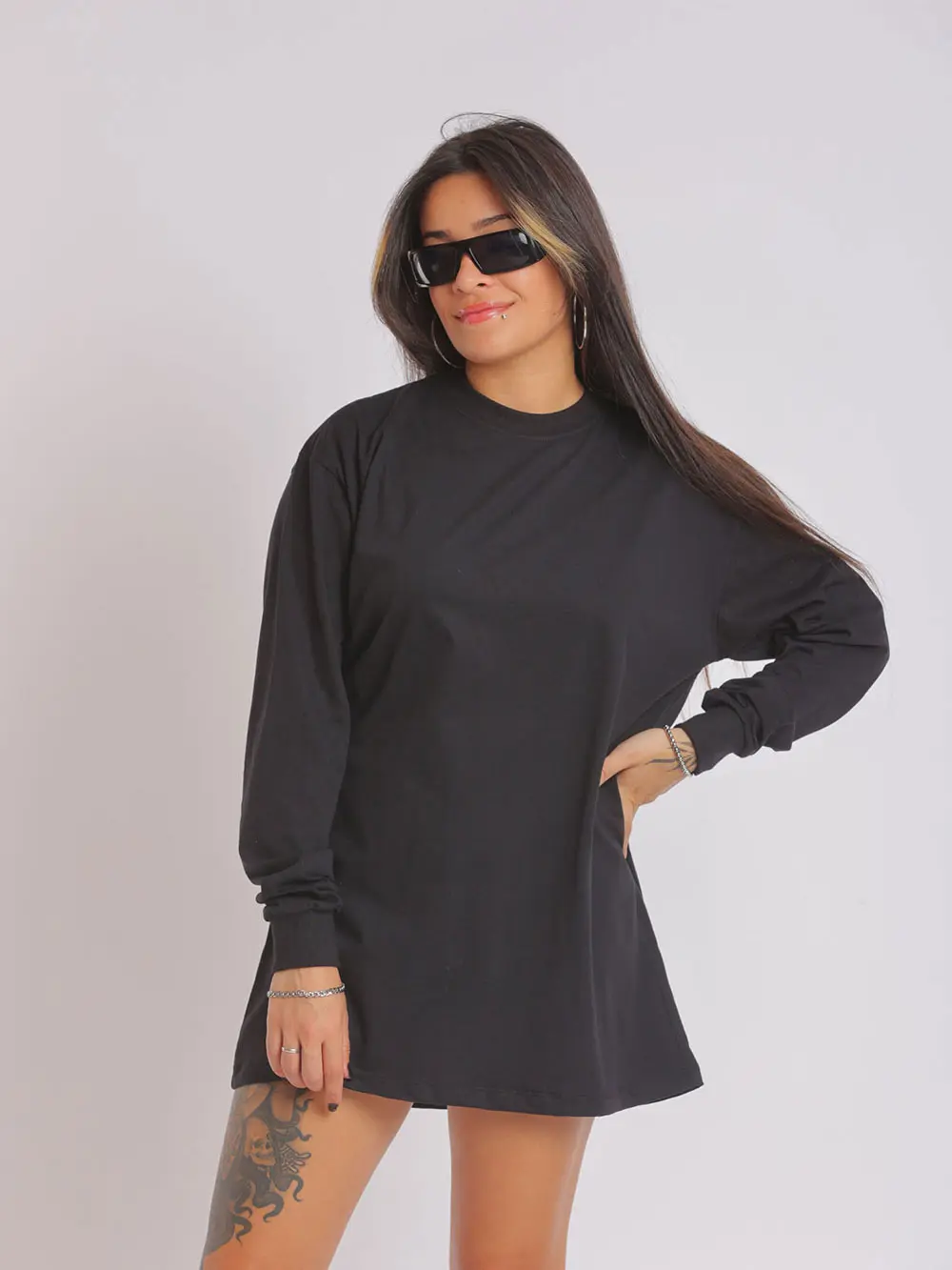 Assim como a maioria das nossas peças, a camiseta oversized manga longa é uma peça essencial no streetwear. Produzidas em malha fio 30.1 penteado, 100% algodão, garantem conforto e maciez. Seu caimento oversized é exclusivo, contando com gola em anel de 2,7cm e ribana canelada 2×1 com elastano.
