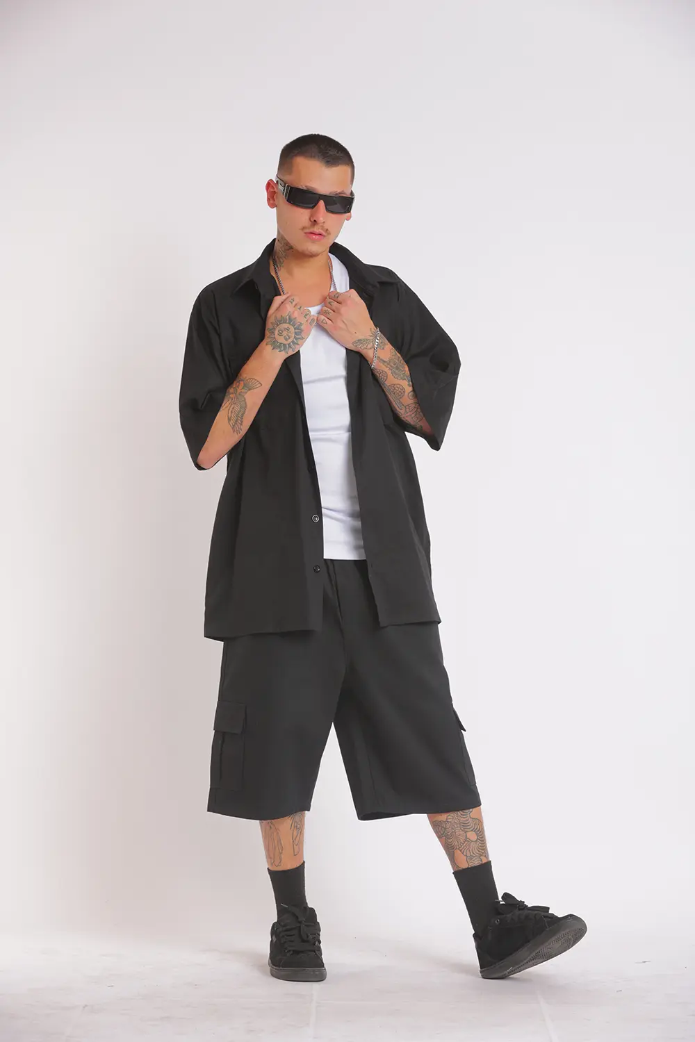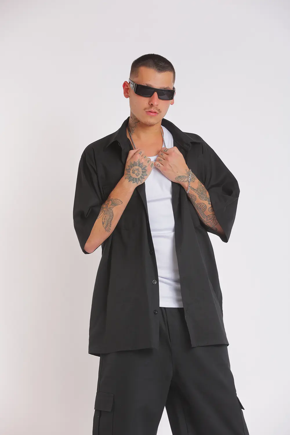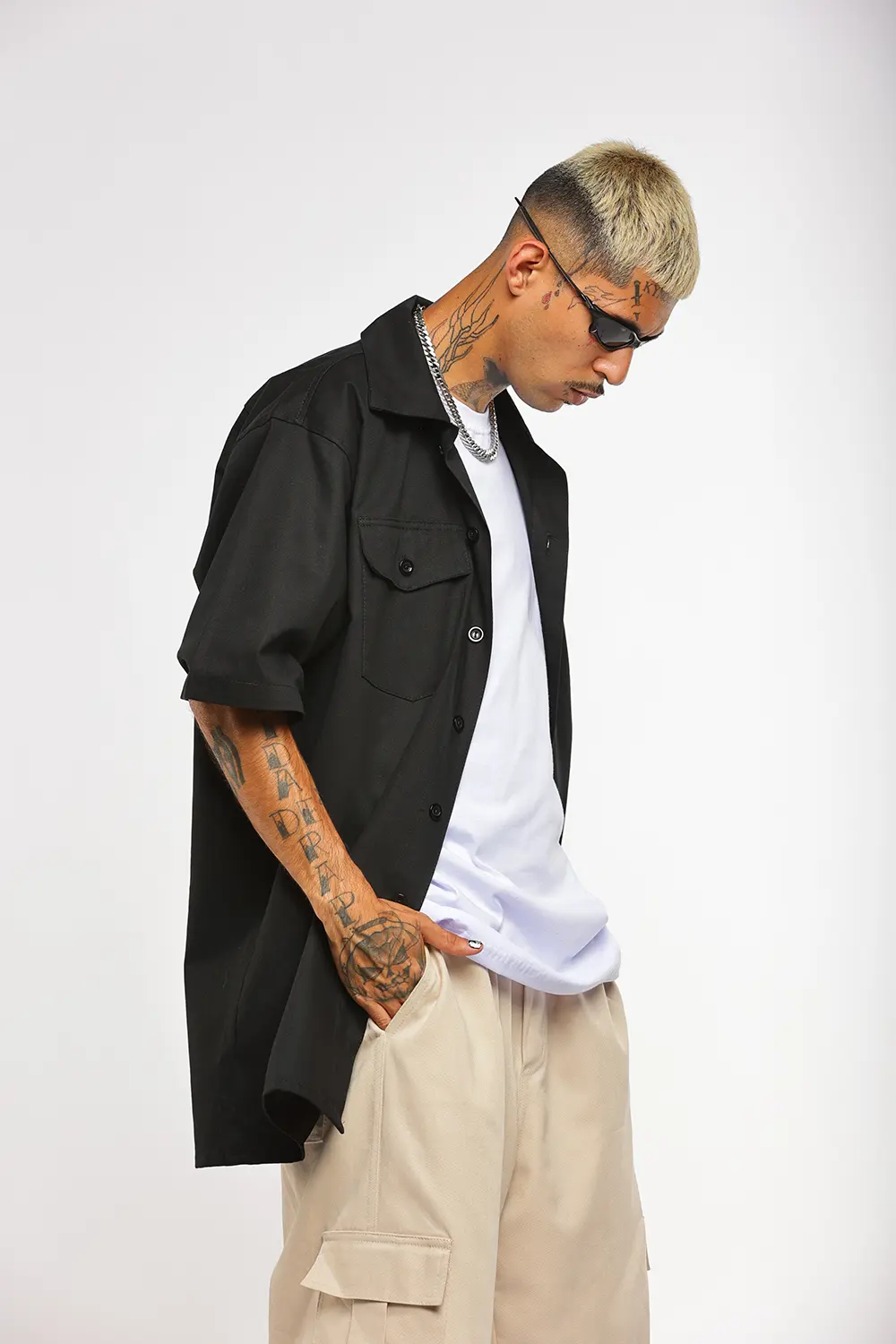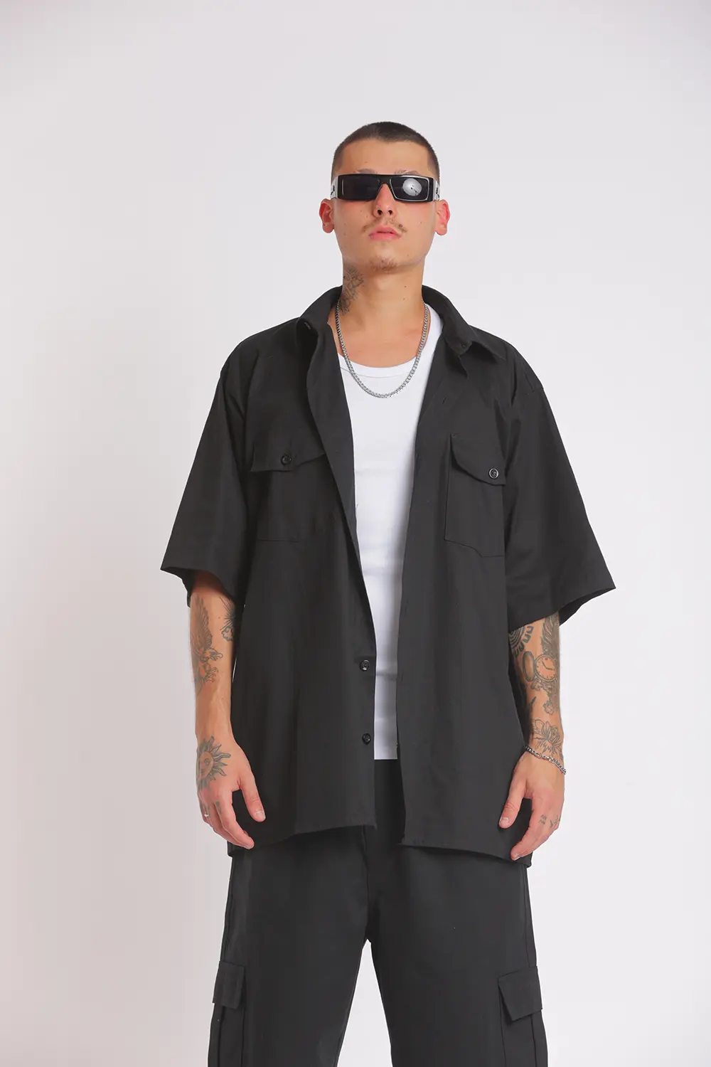 Calça cargo de sarja preta